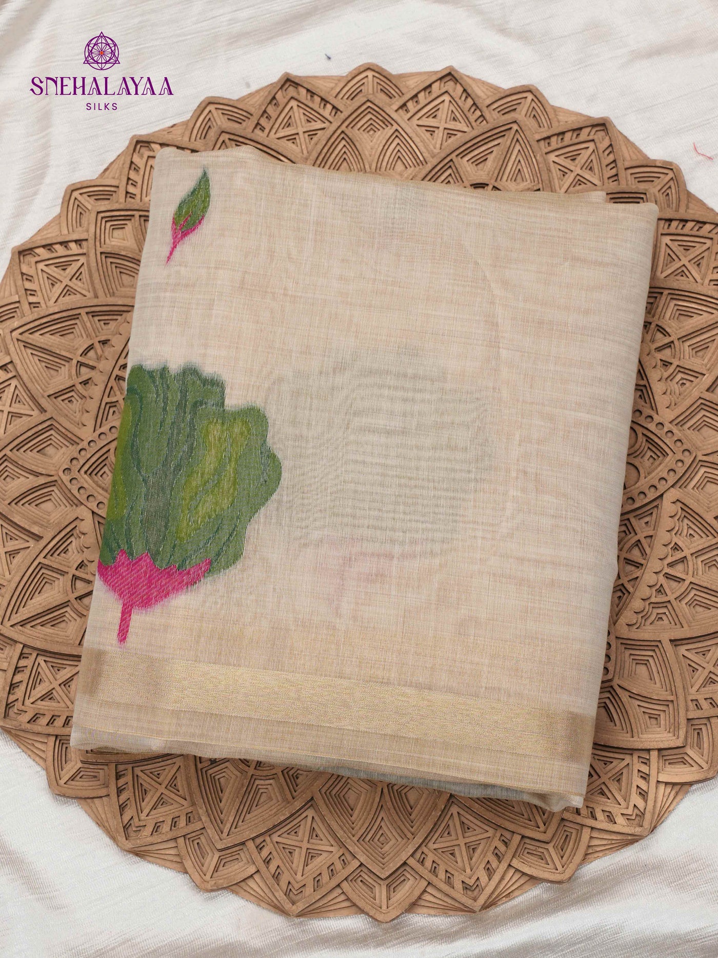 Elegant Munga cotton saree featuring a soft, breathable texture and graceful drape. Adorned with a beautifully woven pallu design that adds a touch of timeless sophistication.