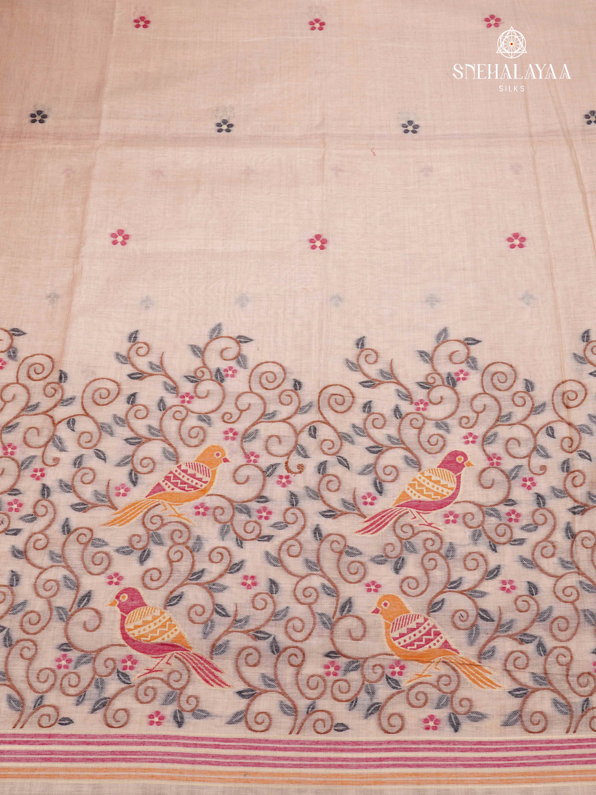 Elegant Munga cotton saree featuring a soft, breathable texture and graceful drape. Adorned with a beautifully woven pallu design that adds a touch of timeless sophistication.