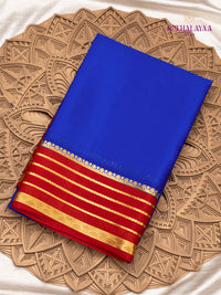 A classic Mysore silk saree with a vibrant contrast blouse and pallu, blending timeless elegance with a pop of color. Perfect for those seeking a sophisticated yet striking look for festive occasions.