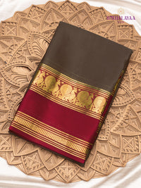 A vibrant mysore saree featuring a rich contrast zari border, blending tradition with elegance. Perfect for festive occasions, this saree adds a regal touch to your wardrobe.