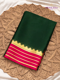 A classic Mysore silk saree with a vibrant contrast blouse and pallu, blending timeless elegance with a pop of color. Perfect for those seeking a sophisticated yet striking look for festive occasions.