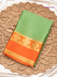 A vibrant mysore saree featuring a rich contrast zari border, blending tradition with elegance. Perfect for festive occasions, this saree adds a regal touch to your wardrobe.