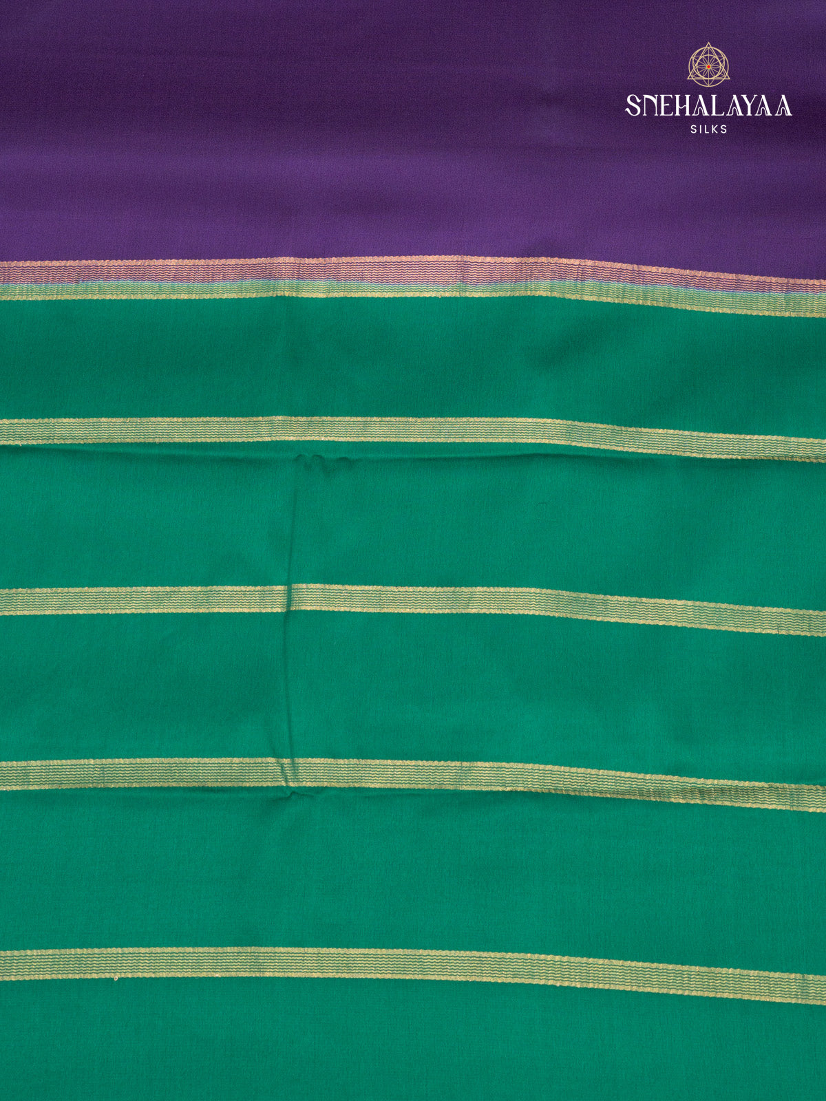 A classic Mysore silk saree with a vibrant contrast blouse and pallu, blending timeless elegance with a pop of color. Perfect for those seeking a sophisticated yet striking look for festive occasions.