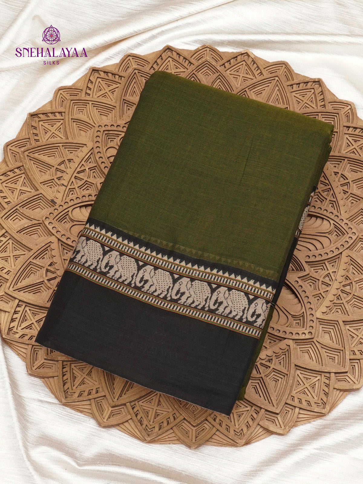Olive Green Narayanpet Cotton Saree without Blouse
