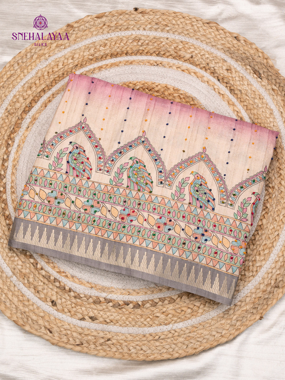 A Tussar saree is crafted from luxurious, textured silk with a natural, earthy sheen. Known for its rich heritage, it offers a graceful, timeless appeal.