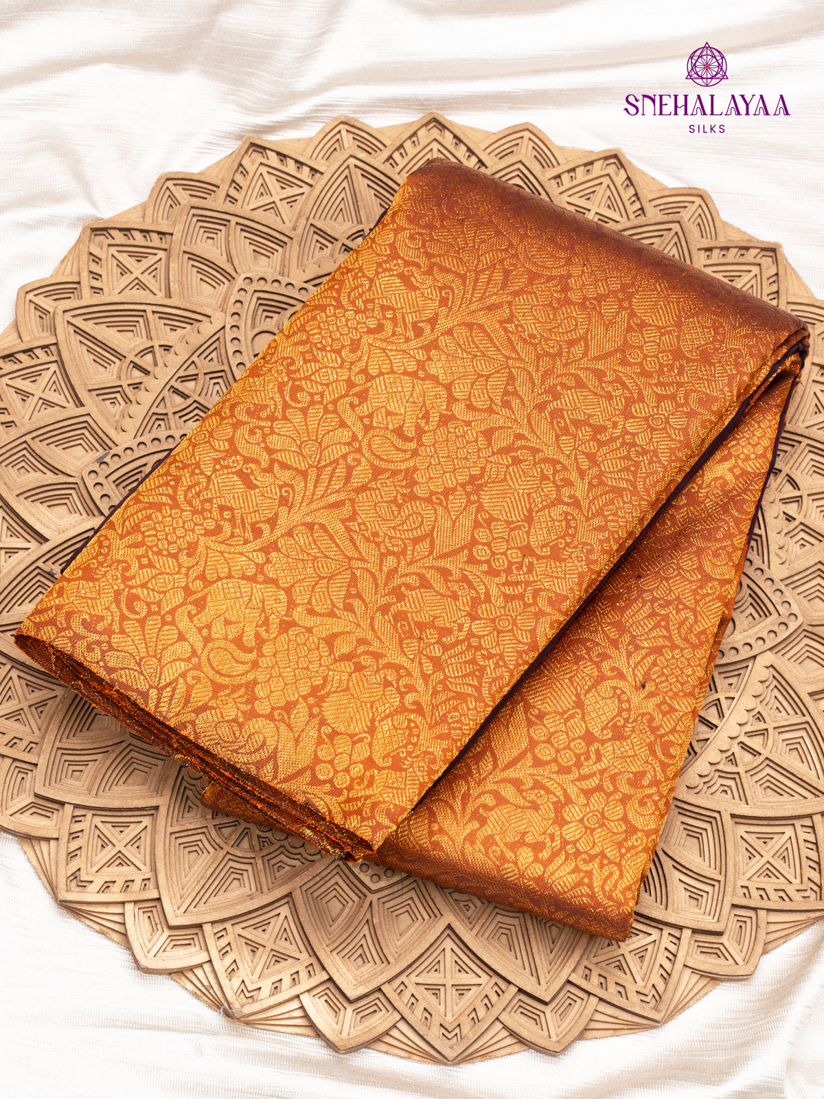 Kanjivaram silk saree features a classic temple border paired with intricate floral, peacock, and animal motifs on the pallu