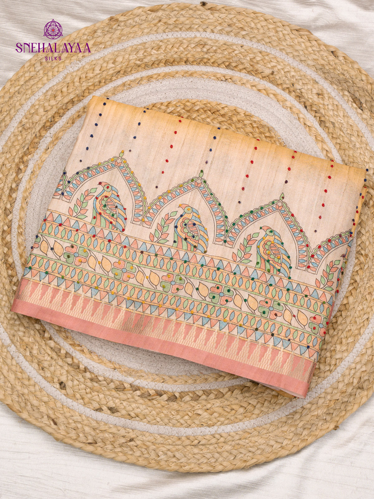 A Tussar saree is crafted from luxurious, textured silk with a natural, earthy sheen. Known for its rich heritage, it offers a graceful, timeless appeal.