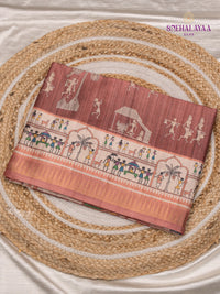 Elegantly crafted Dola saree featuring intricate designs running throughout the body, complemented by a contrast pallu and blouse for a timeless appeal