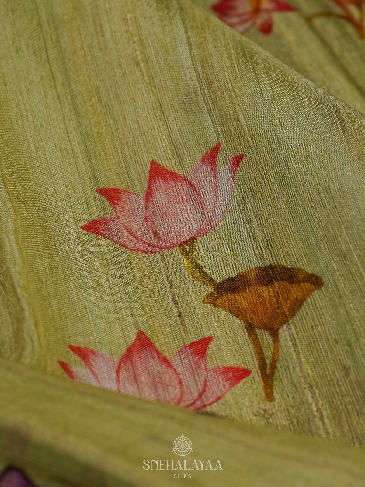 A luxurious Munga Tussar saree adorned with elegant prints for a timeless ethnic look. Its natural sheen and soft texture bring effortless grace to every occasion.