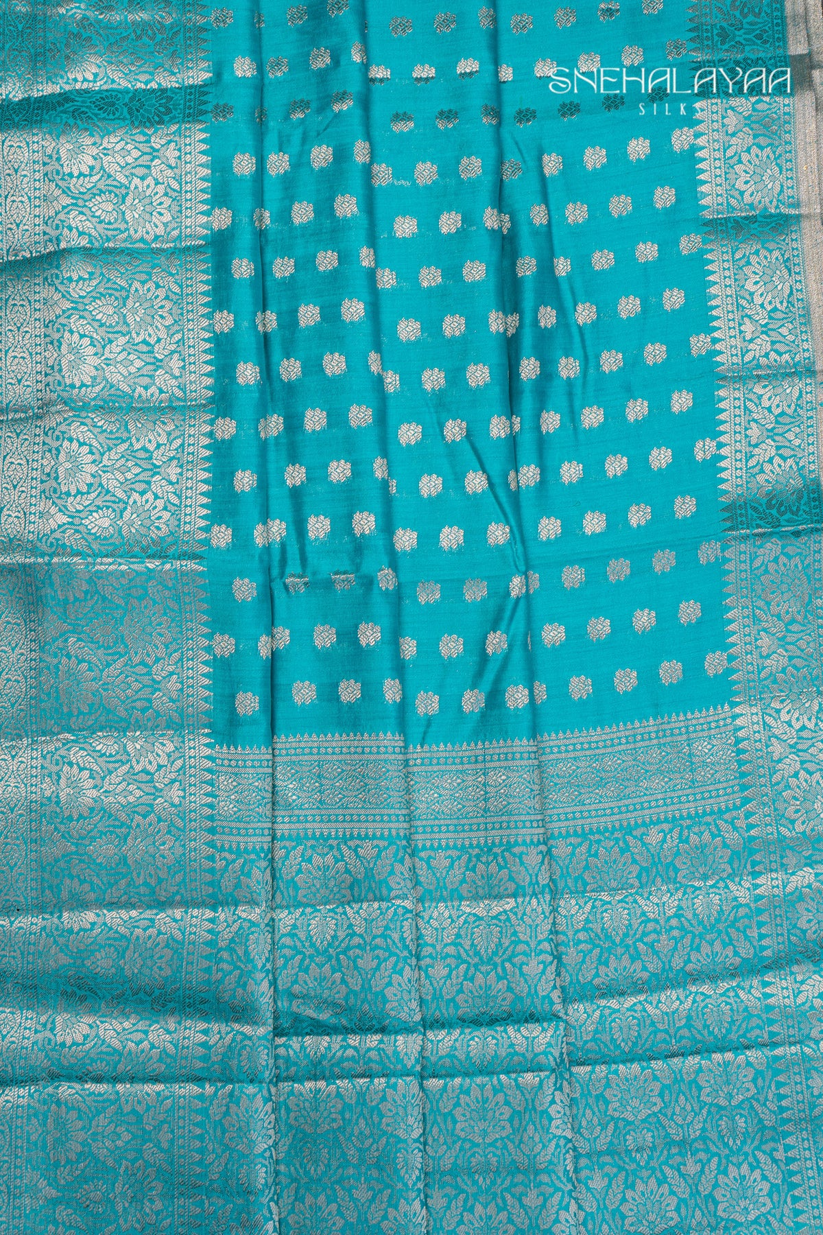 This banarasi dupion silk fabric, known for its slightly textured finish and crisp feel, provides a beautiful sheen that enhances the overall visual appeal of the saree.