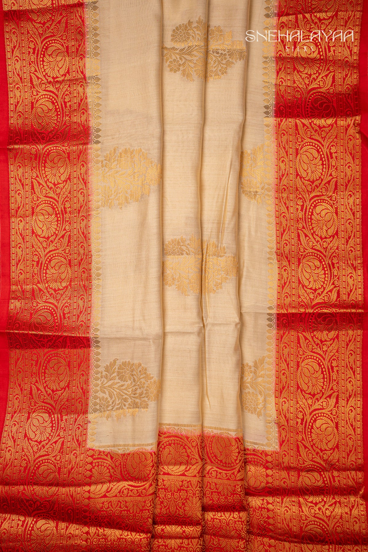 Cream Banaras Dupion Silk Saree