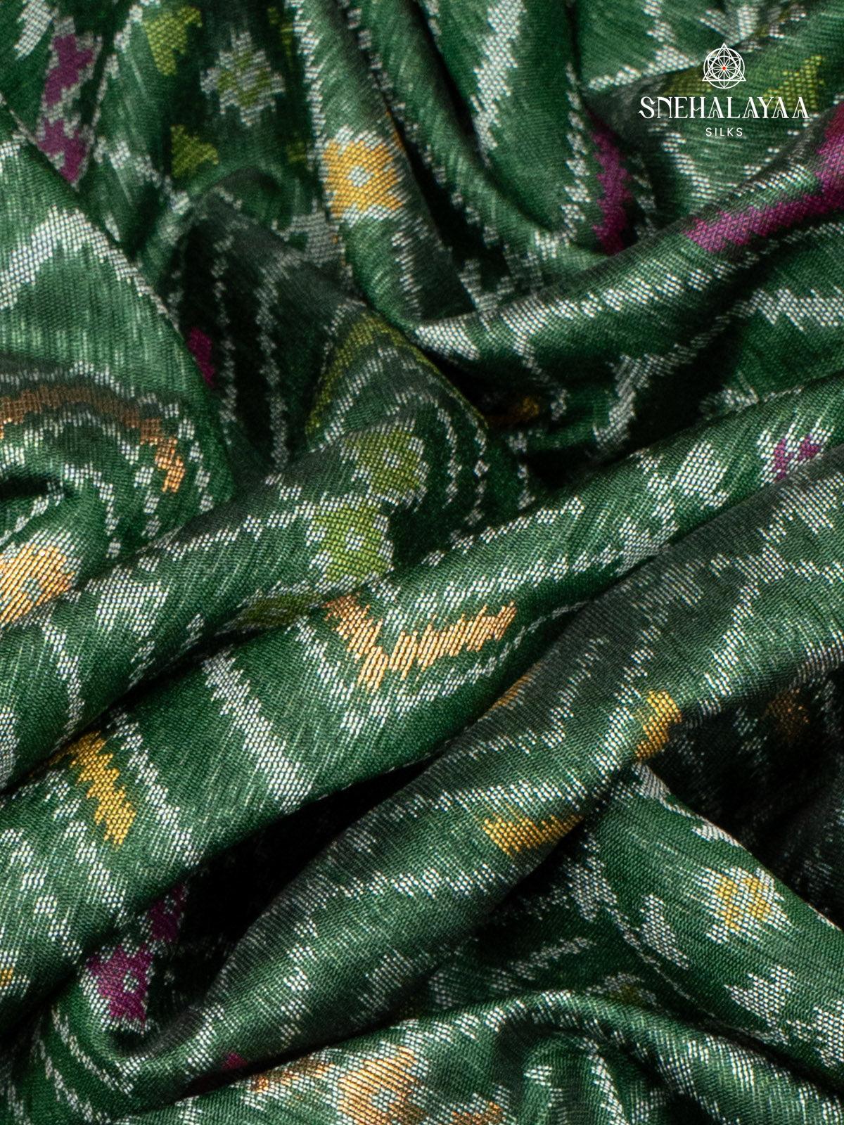 Gracefully handwoven Ikat Silk Saree featuring a striking contrast border and pallu a perfect blend of tradition and style