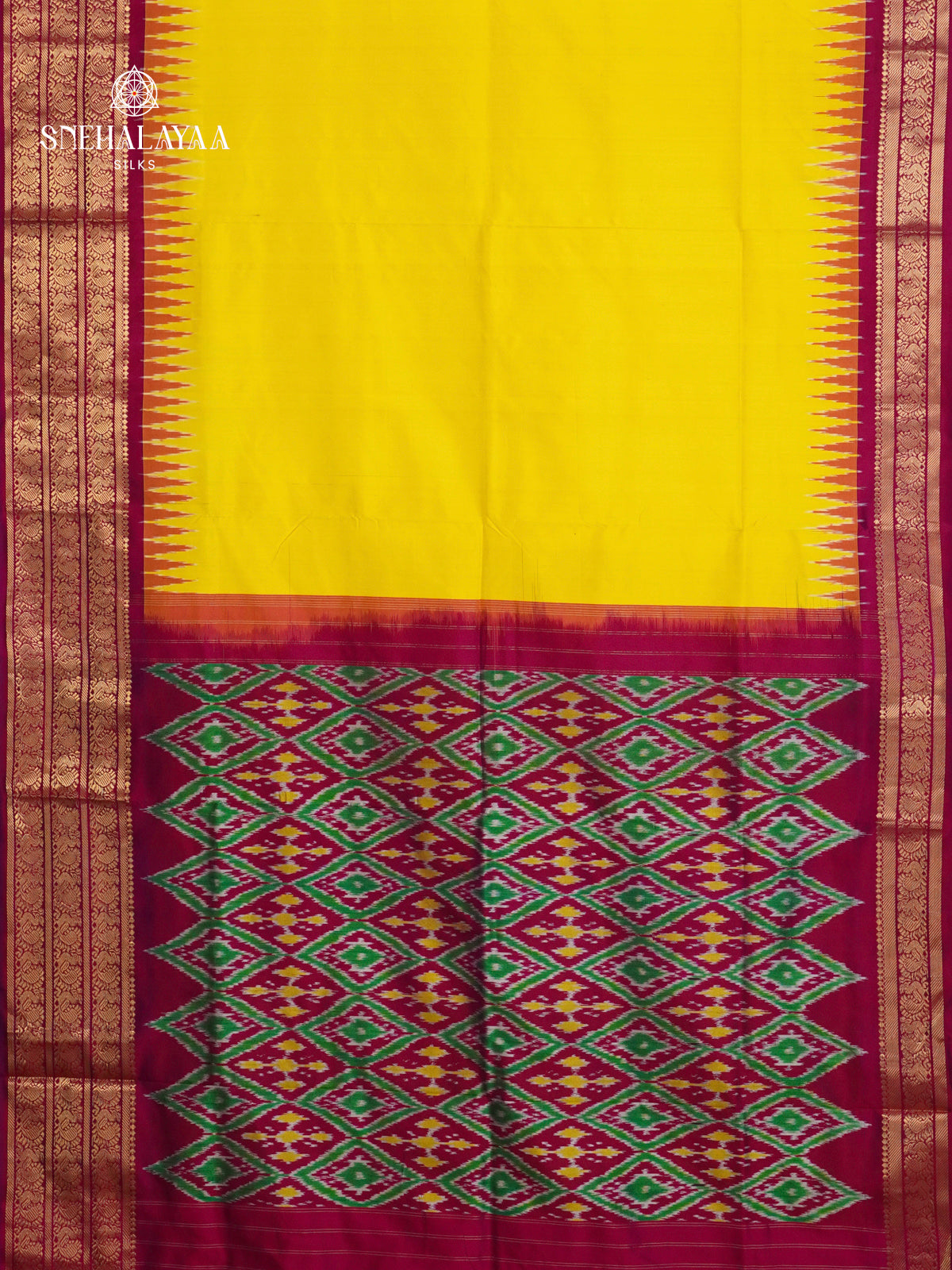Gracefully handwoven Ikat Silk Saree featuring a striking contrast border and pallu a perfect blend of tradition and style