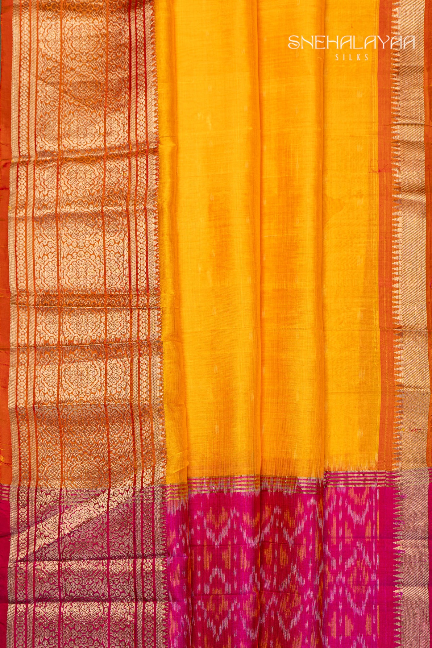 Yellow Mangalgiri Ikat Silk Saree