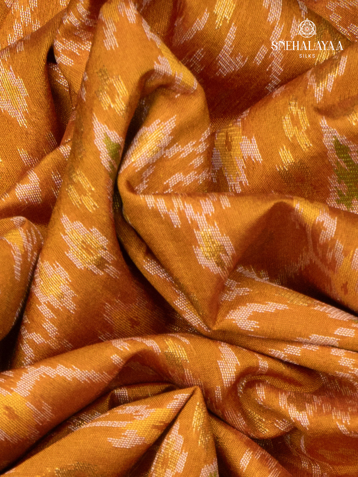 Gracefully handwoven Ikat Silk Saree featuring a striking contrast border and pallu a perfect blend of tradition and style