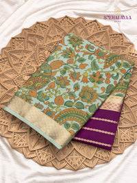 Purple Printed Mysore Silk Saree