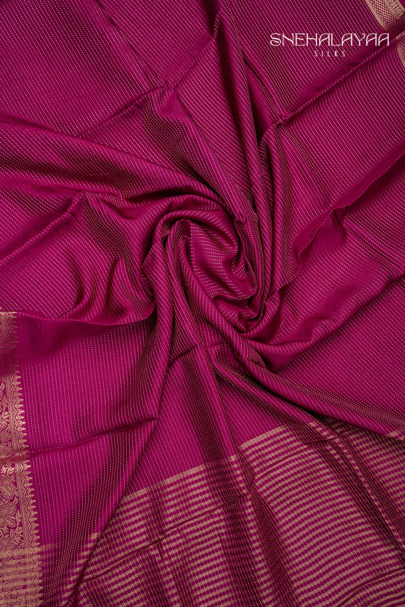 These sarees often feature detailed embellishments like zari work, sequins, or delicate hand embroidery in silver or gold tones, which complement the deep magenta beautifully.