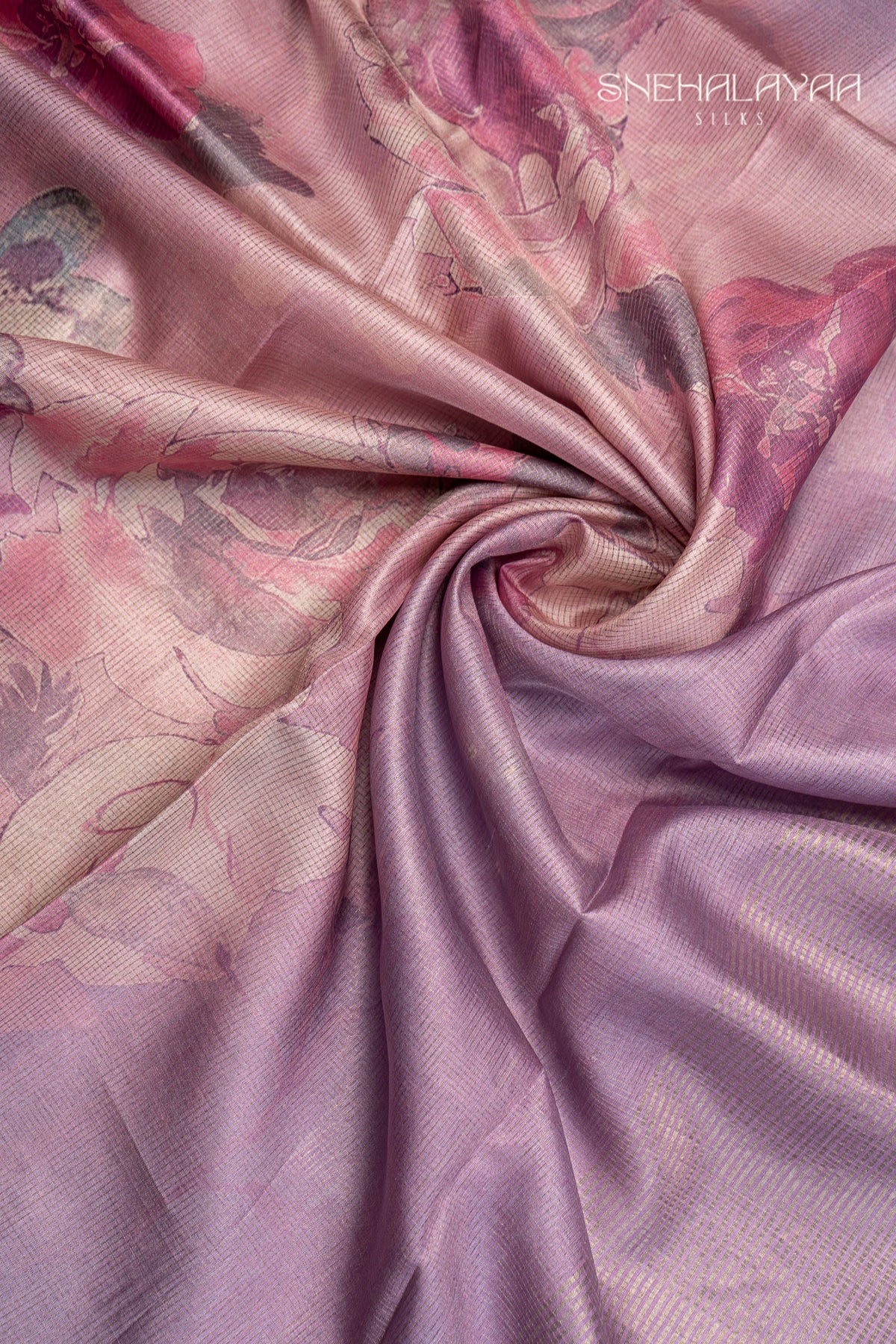 This printed tussar saree is a delightful and vibrant choice that combines the elegance of traditional silk with a playful touch of color.