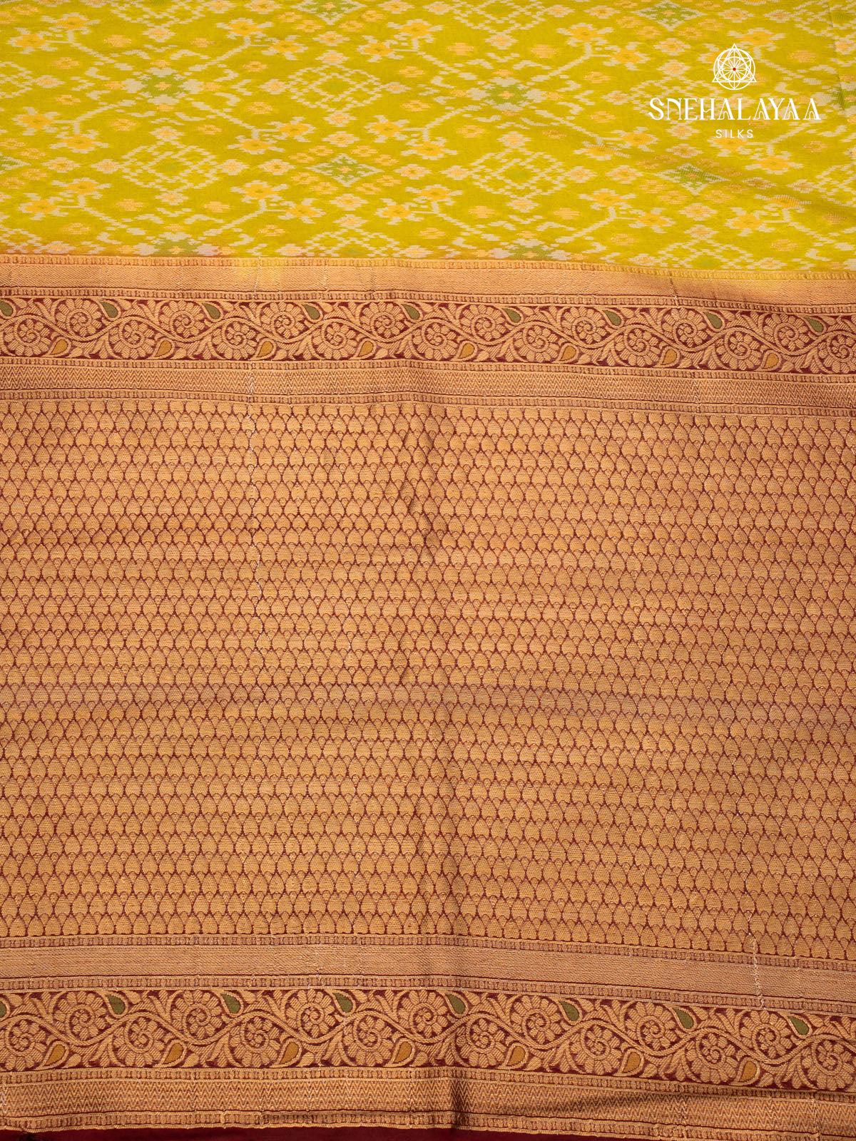 Gracefully handwoven Ikat Silk Saree featuring a striking contrast border and pallu a perfect blend of tradition and style