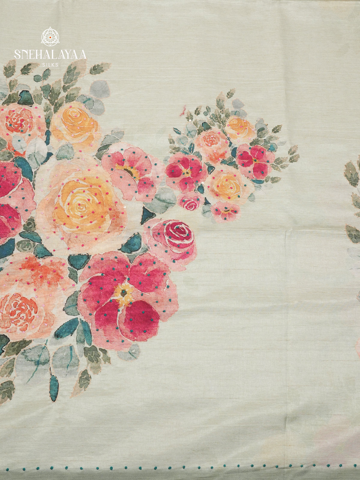 A Tussar embroidery saree showcases the natural texture and earthy elegance of Tussar silk enhanced with intricate handcrafted embroidery. It offers a refined, graceful look ideal for festive occasions and elegant daytime wear.