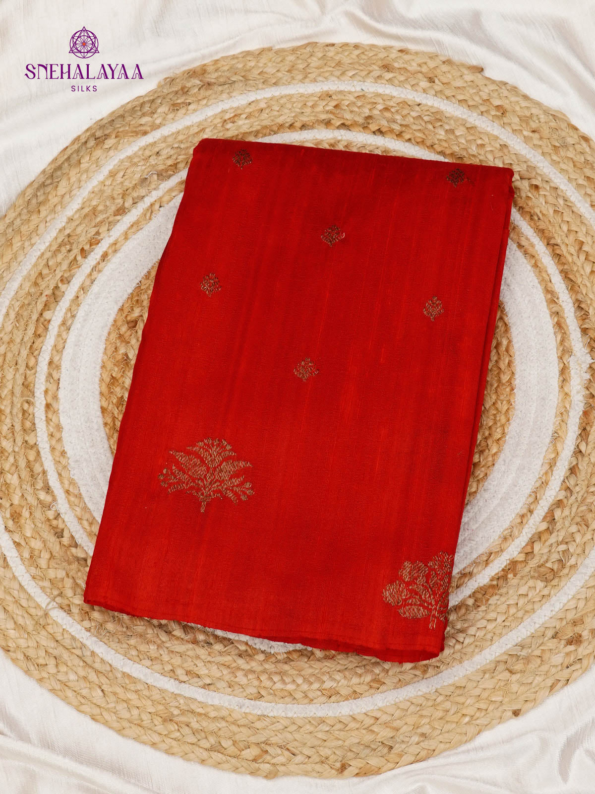 A Banaras raw silk saree blends a rich, textured finish with understated natural sheen. Woven with classic Banarasi motifs, it exudes timeless elegance and heritage charm.