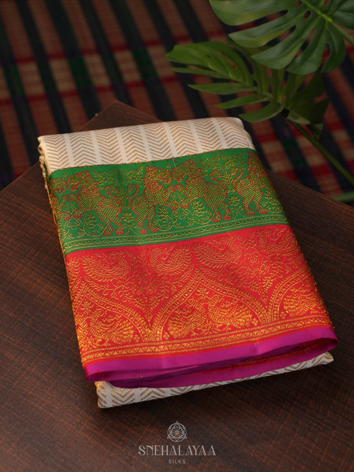 A Kanjivaram silk saree is a timeless South Indian classic, known for its rich silk, vibrant colors, and intricate zari borders. Woven in Kanchipuram, it symbolizes heritage, luxury, and enduring craftsmanship.