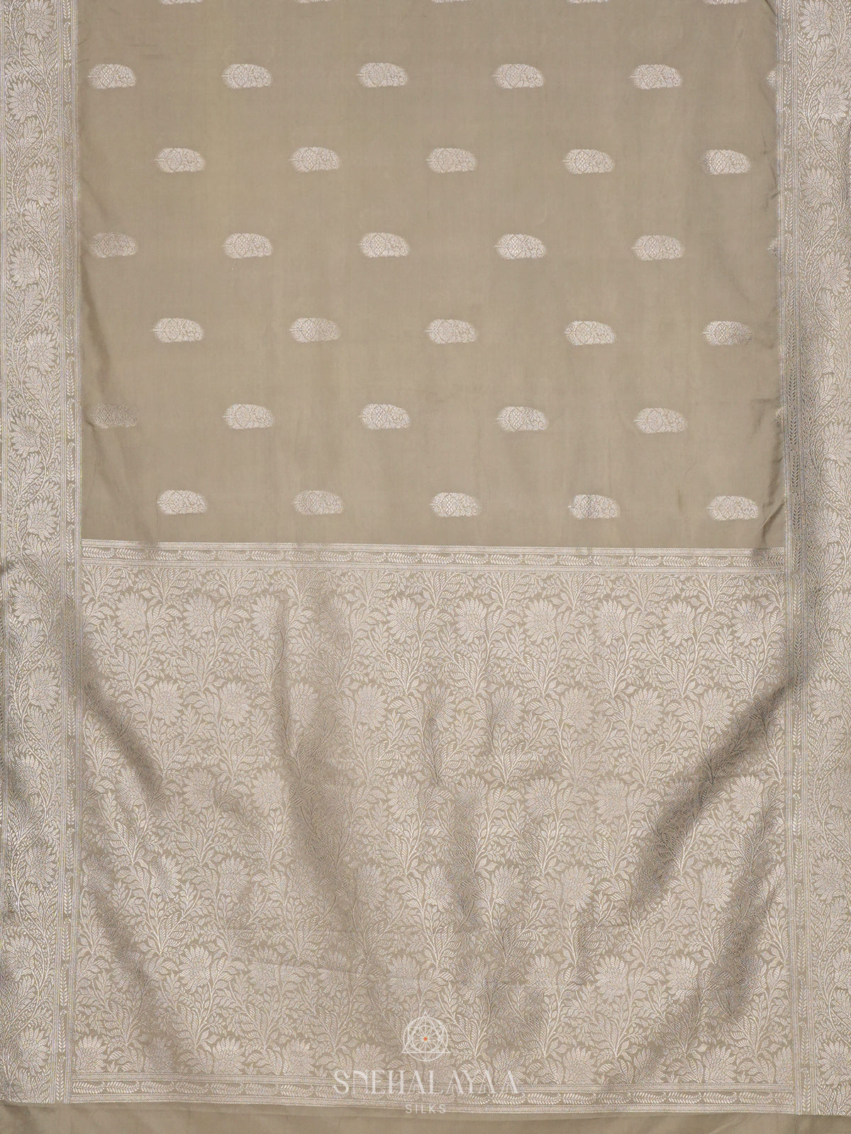A luxurious Satin Banaras Saree featuring intricate floral motifs scattered across the entire body. Ideal for elegant occasions, this saree combines traditional craftsmanship with a modern, lustrous finish.