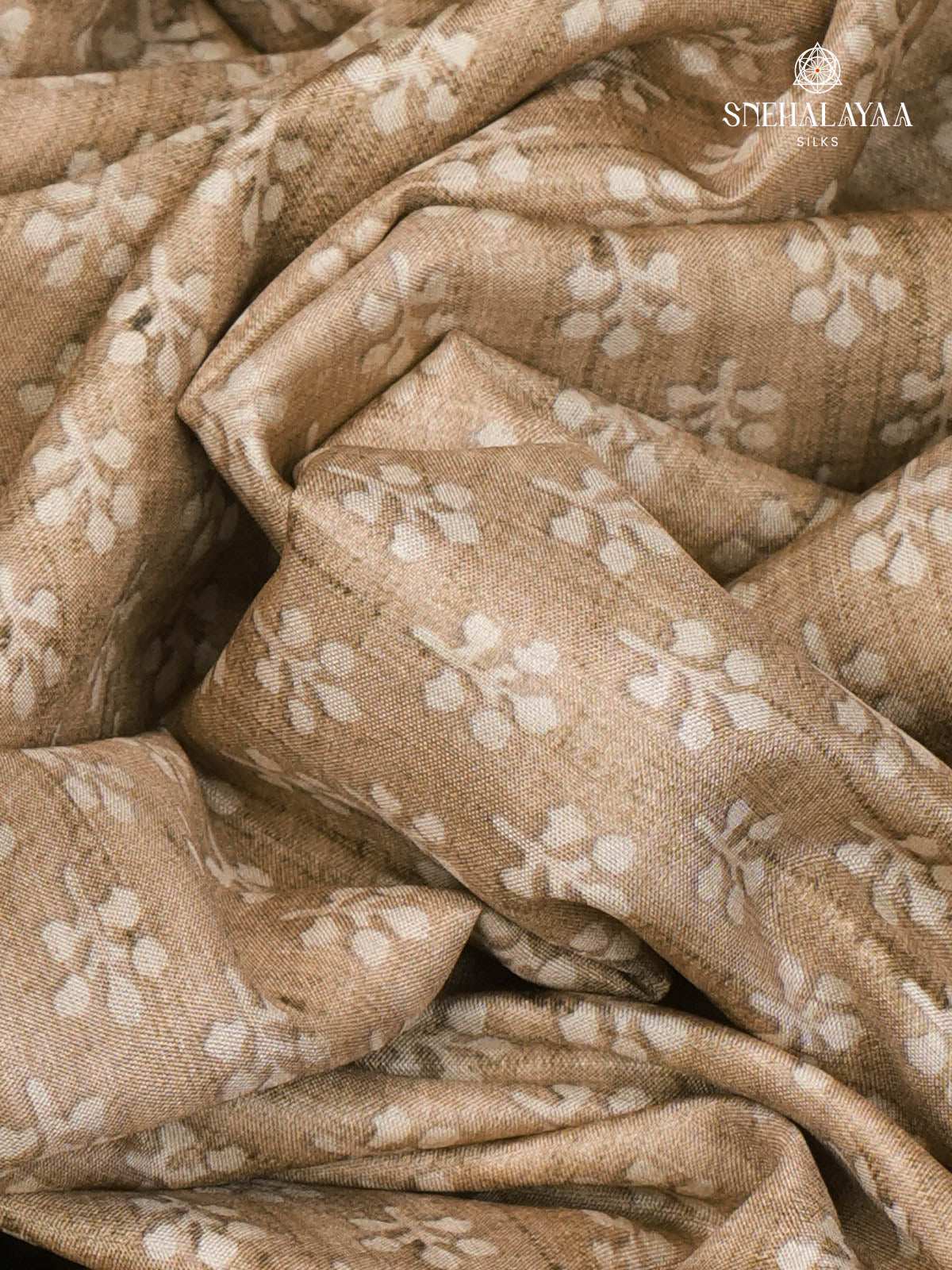 Beautifully printed Tussar with blooming floral patterns that stand out. Its subtle sheen and breathable feel make it a versatile wardrobe favorite.