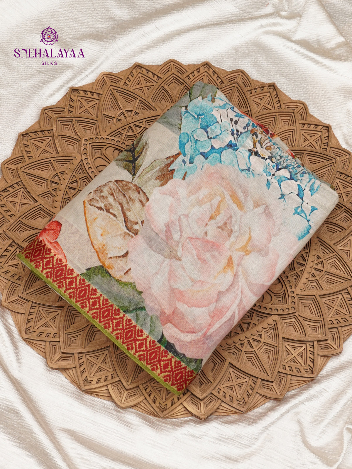 A printed linen cotton saree blends the softness of cotton with the crisp texture of linen. Adorned with elegant prints, it offers breathable comfort and effortless style for daily wear.