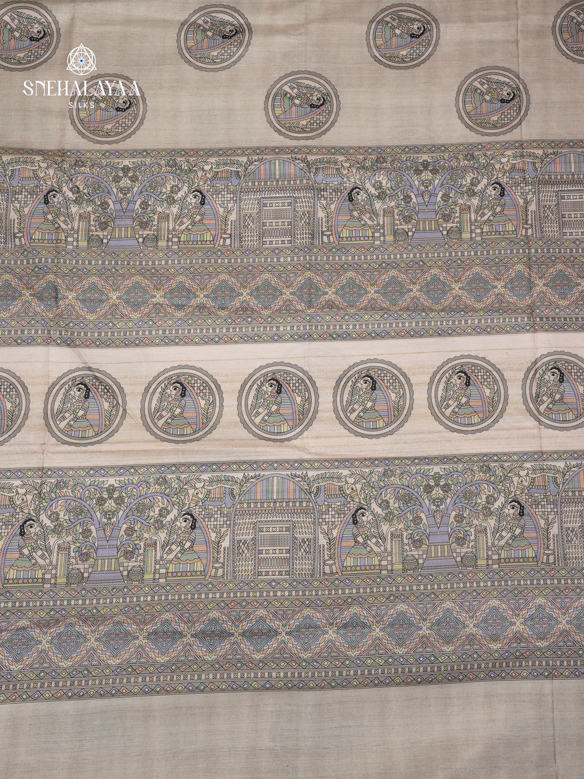 Sand Beige Madhubani Printed Saree