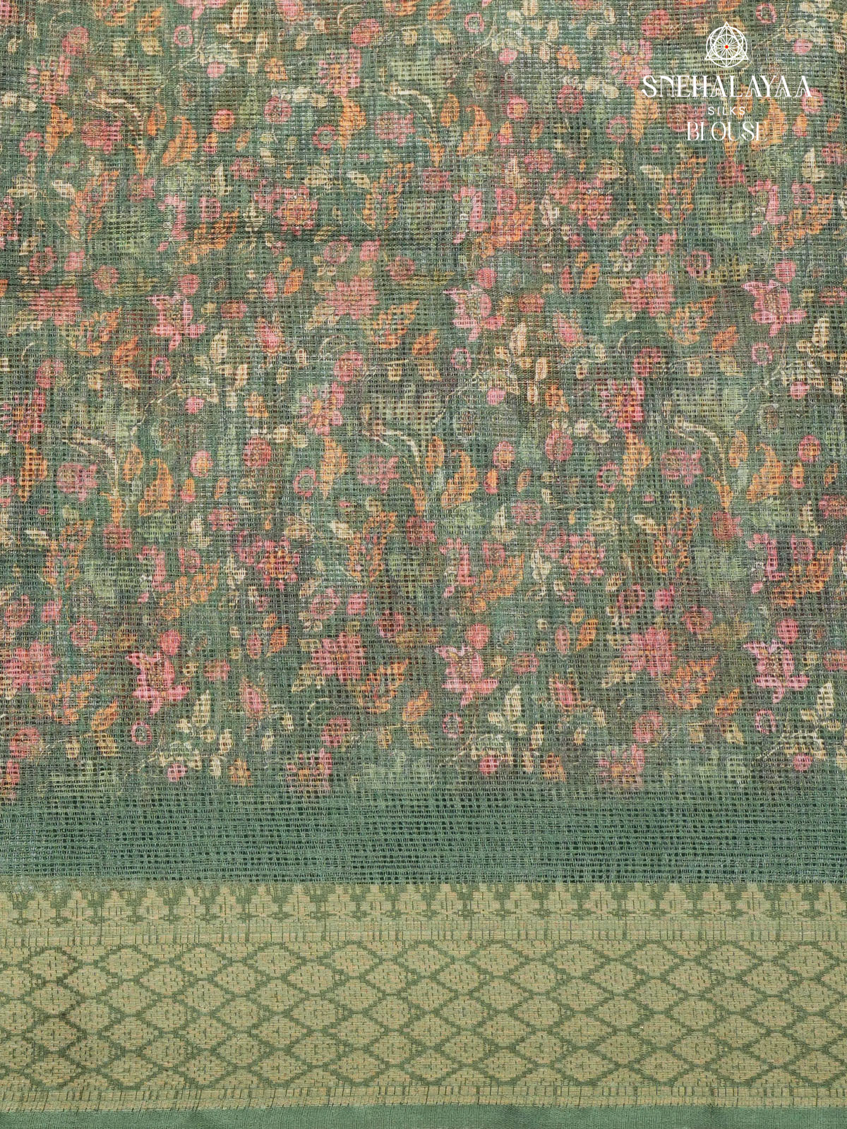 Teal Green Printed Kota Saree