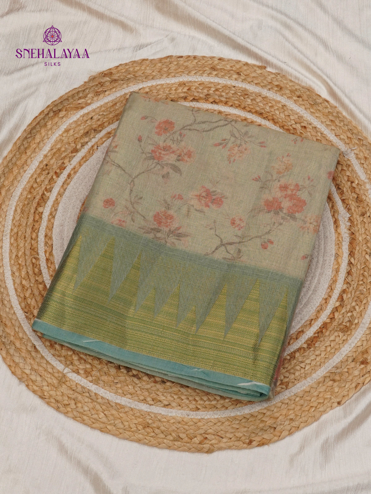 A linen tissue saree beautifully blends the natural texture of linen with a soft, subtle sheen. Lightweight and elegant, it offers effortless grace for any occasion.