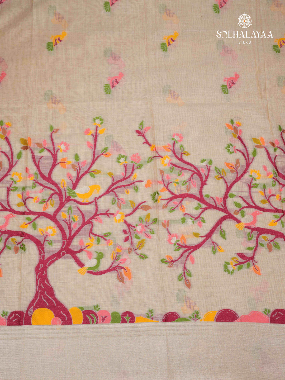 Elegant Munga cotton saree featuring a soft, breathable texture and graceful drape. Adorned with a beautifully woven pallu design that adds a touch of timeless sophistication.