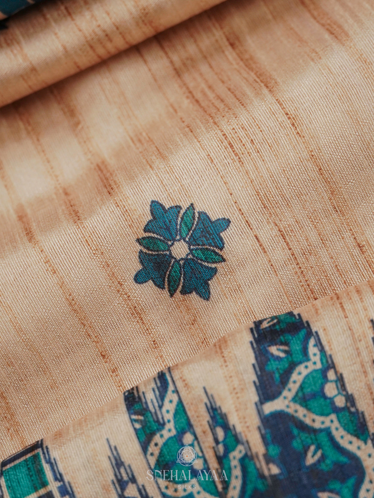 Beige with Blue Border Tussar Saree