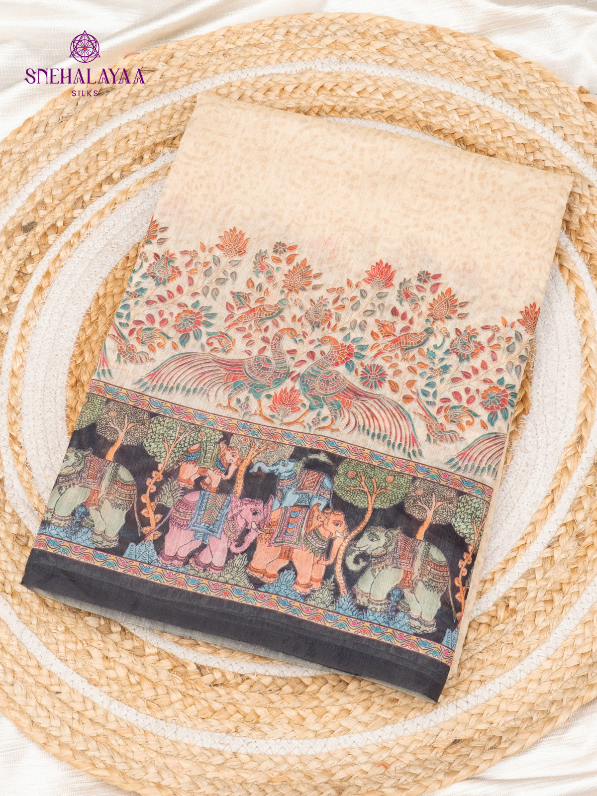 A lightweight, breathable linen saree featuring elegant printed patterns for a timeless, ethnic look. Perfect for everyday comfort or subtle festive styling with its soft texture and graceful drape.