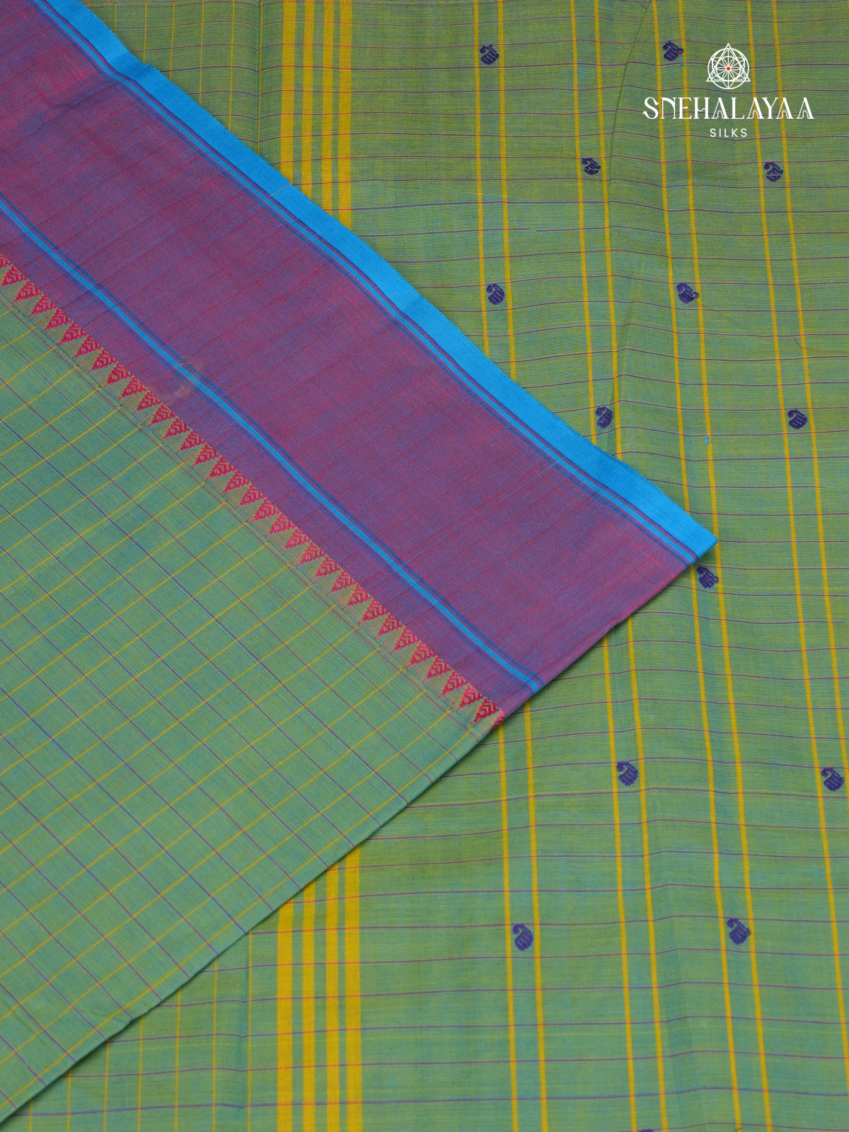 Chettinad cotton sarees are renowned for their bold, geometric patterns and stripes. They often feature vibrant, contrasting colors in wide checks