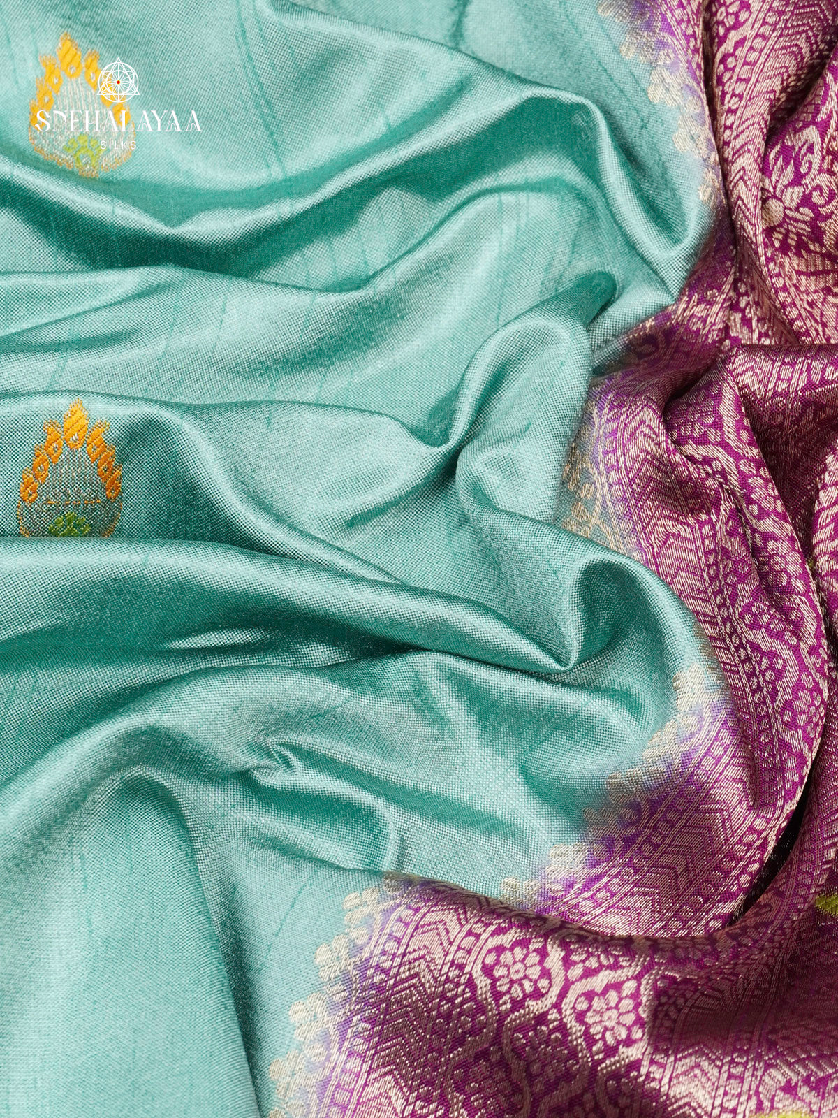 Seafoam Green Banaras Dola Silk Saree