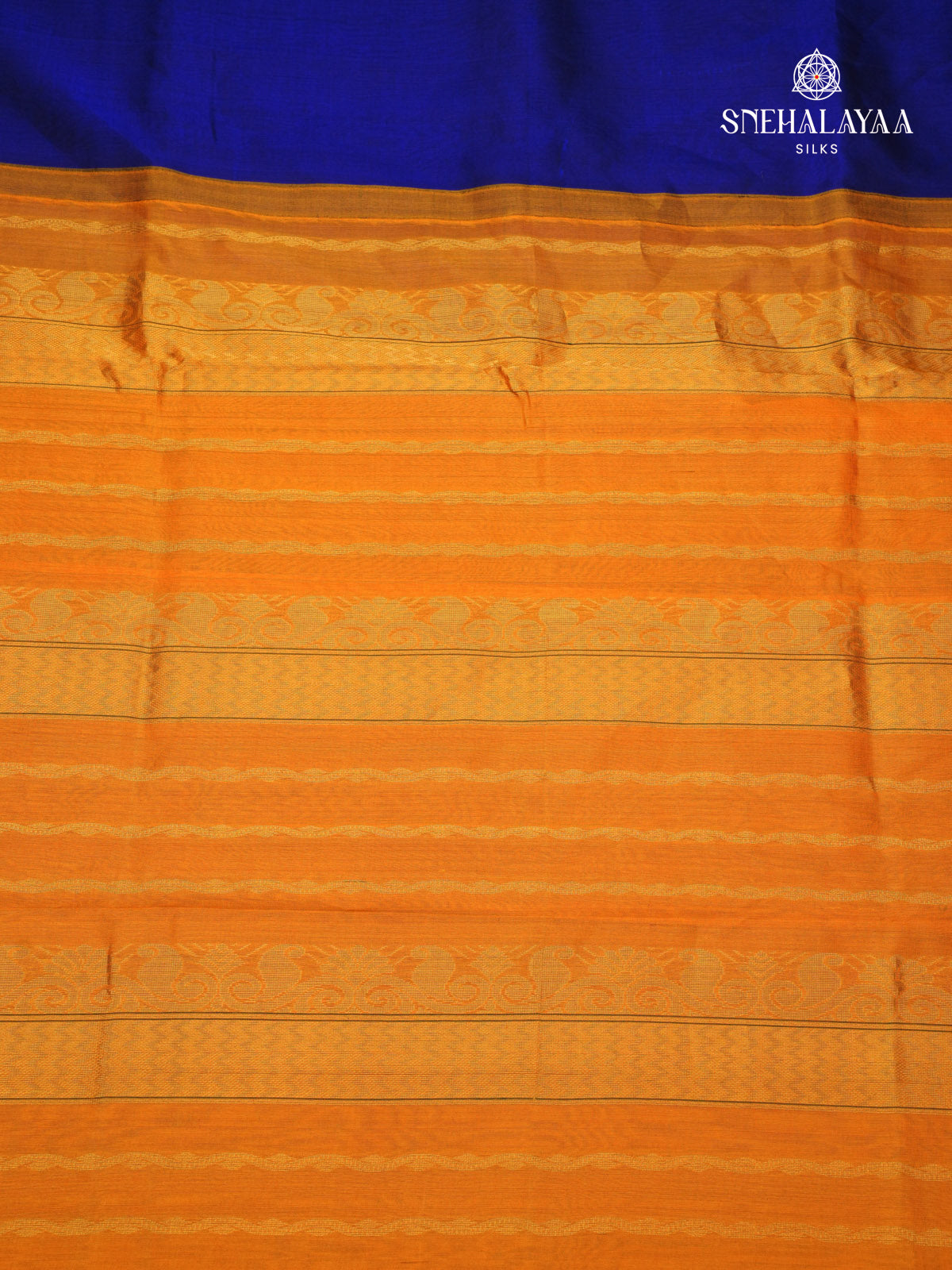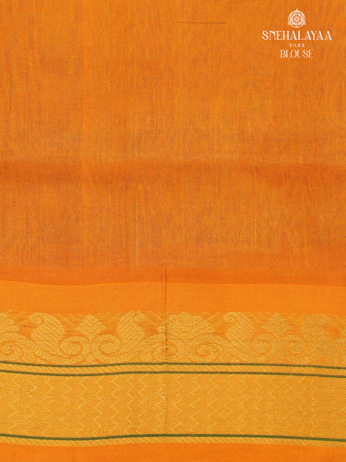 This Contrast border and pallu enhance the elegance of this Silk Cotton Saree, adding a striking visual appeal to its graceful drape.