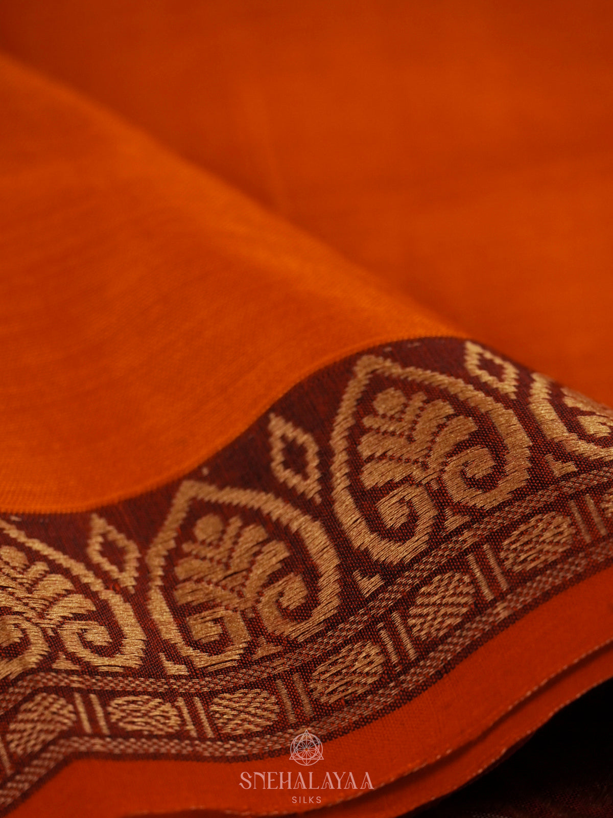 Orange Narayanpet Cotton Saree without Blouse