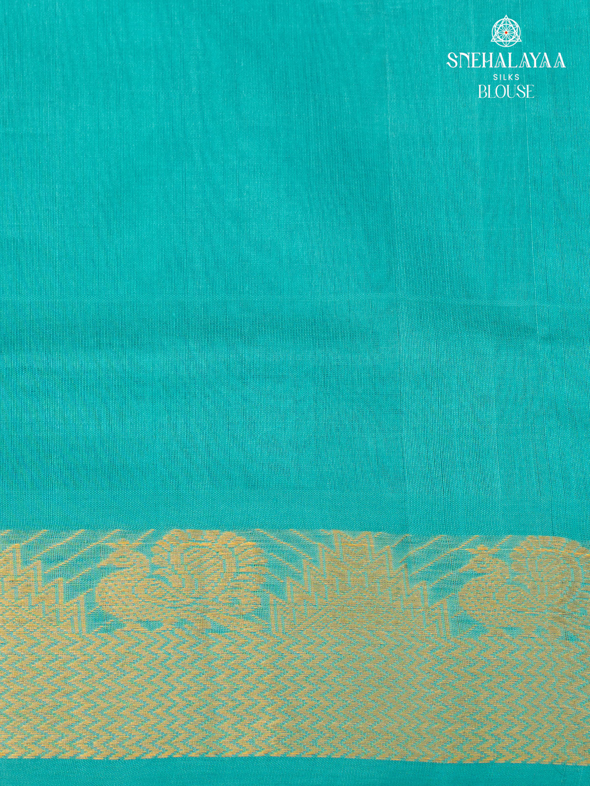 This Contrast border and pallu enhance the elegance of this Silk Cotton Saree, adding a striking visual appeal to its graceful drape.