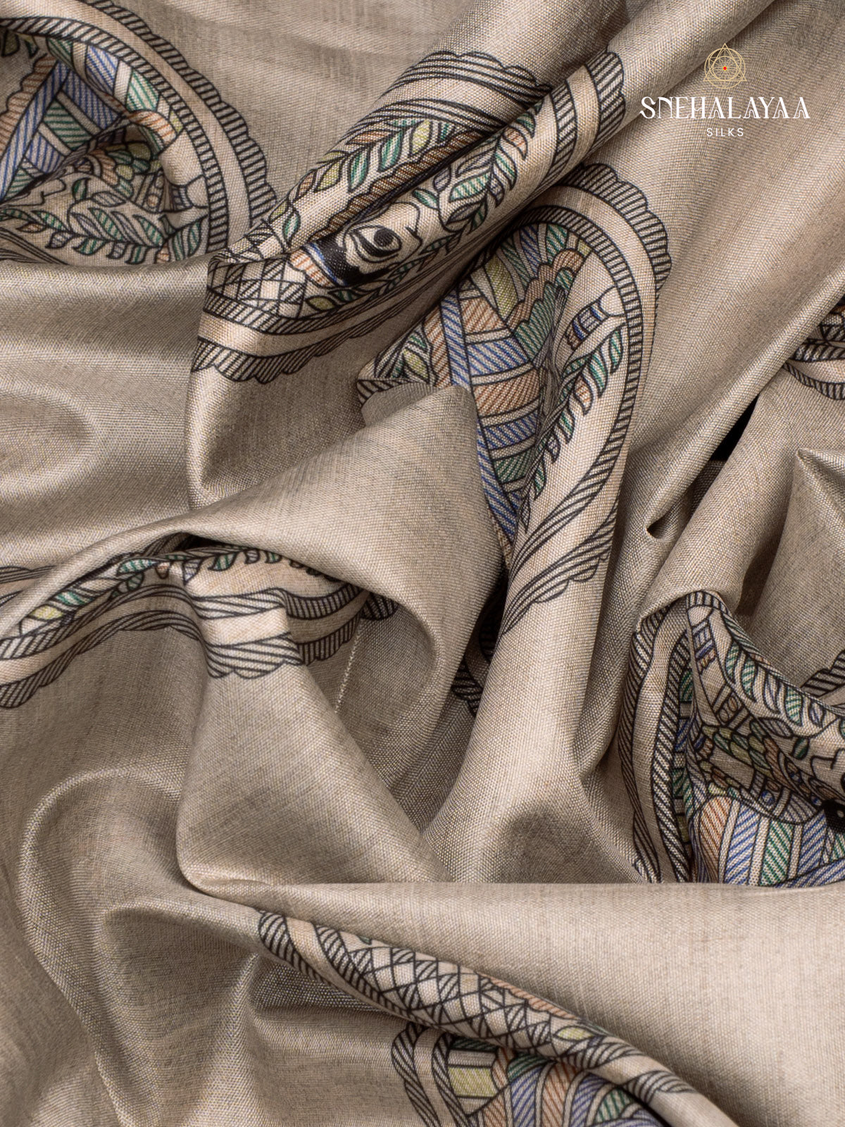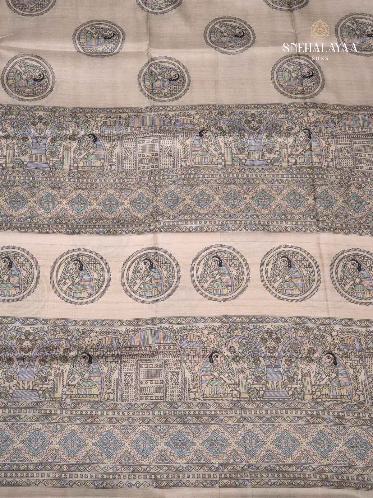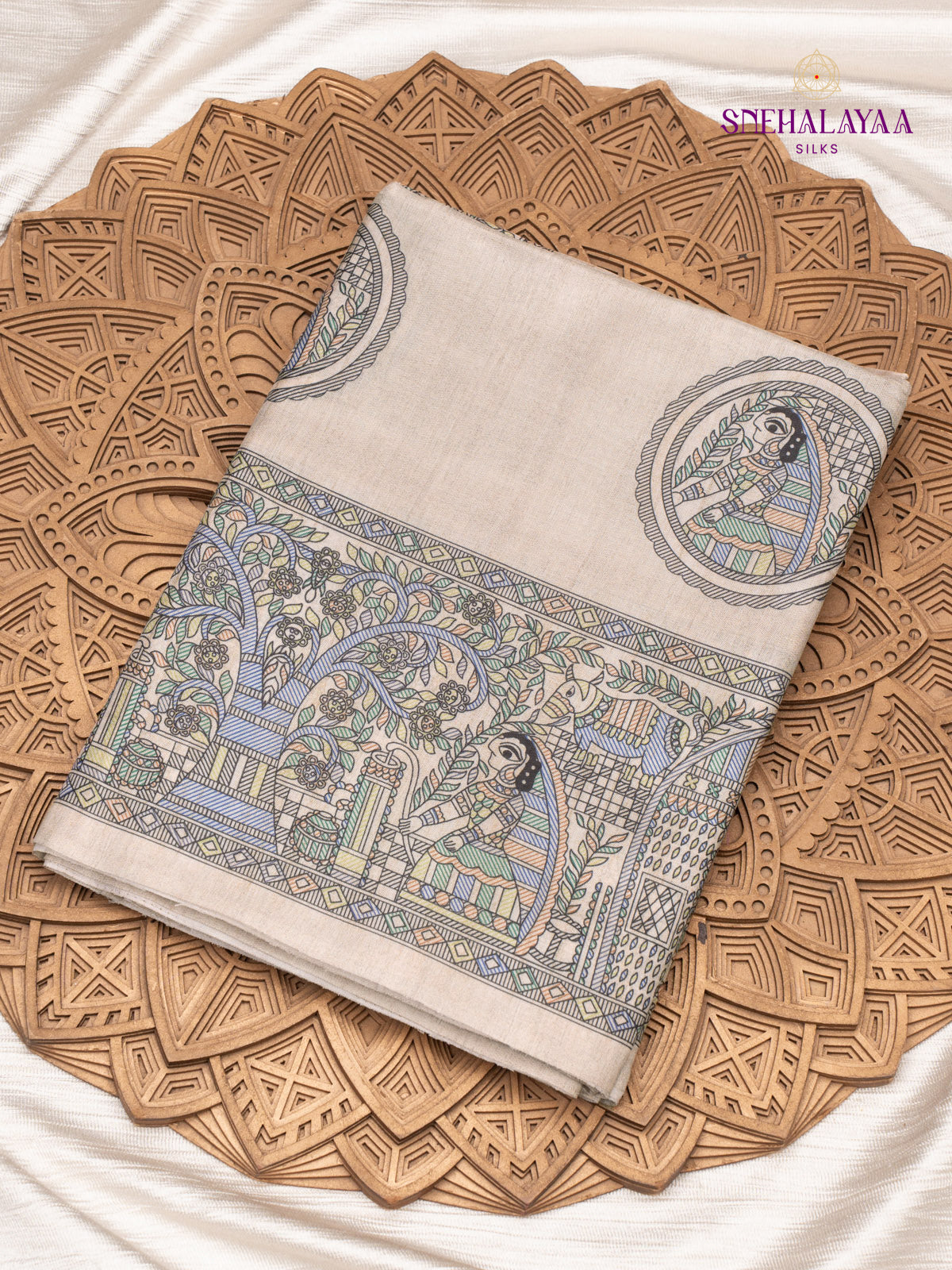 Beige Tussar Madhubani Saree