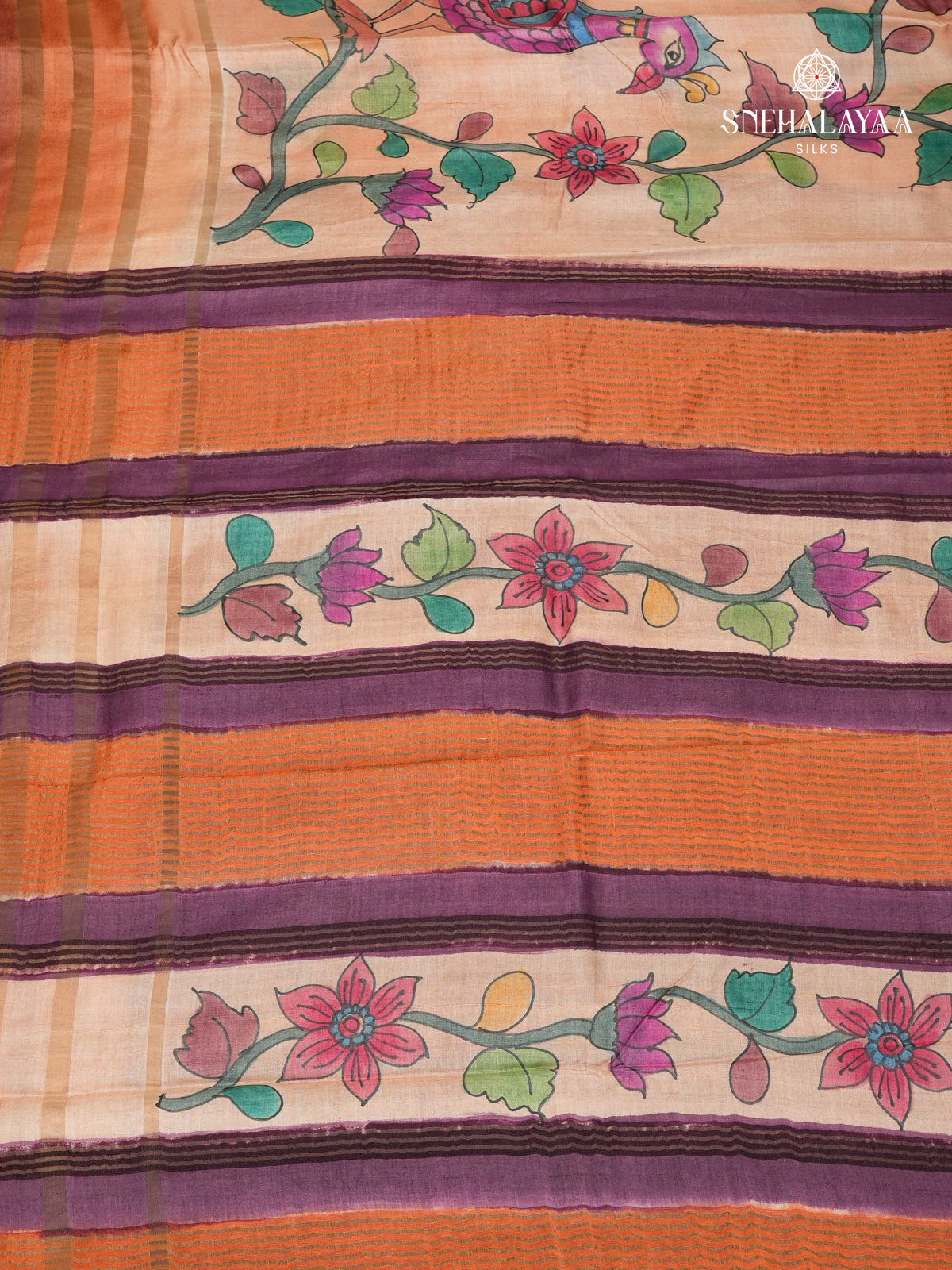 Beautifully printed Tussar with blooming floral patterns that stand out. Its subtle sheen and breathable feel make it a versatile wardrobe favorite.