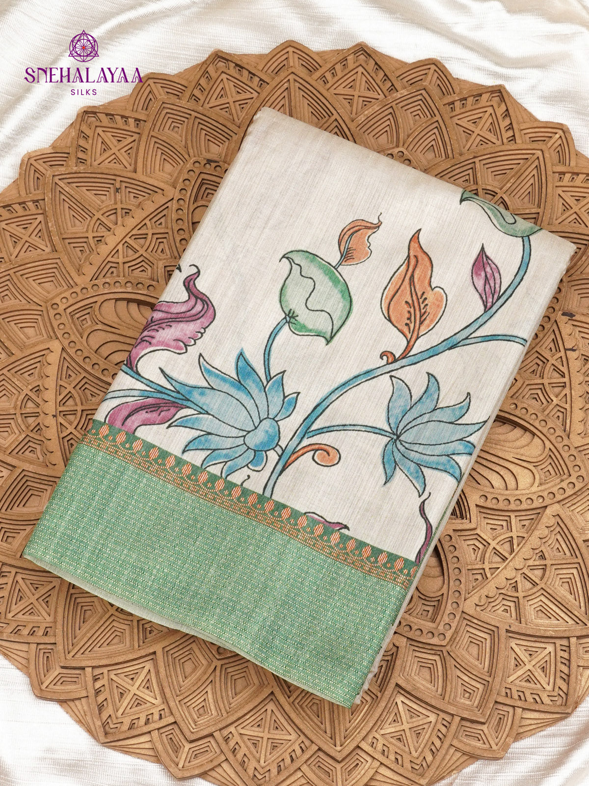 A tussar contemporary-style saree blends the rich, natural texture of tussar silk with modern motifs and minimalist elegance.