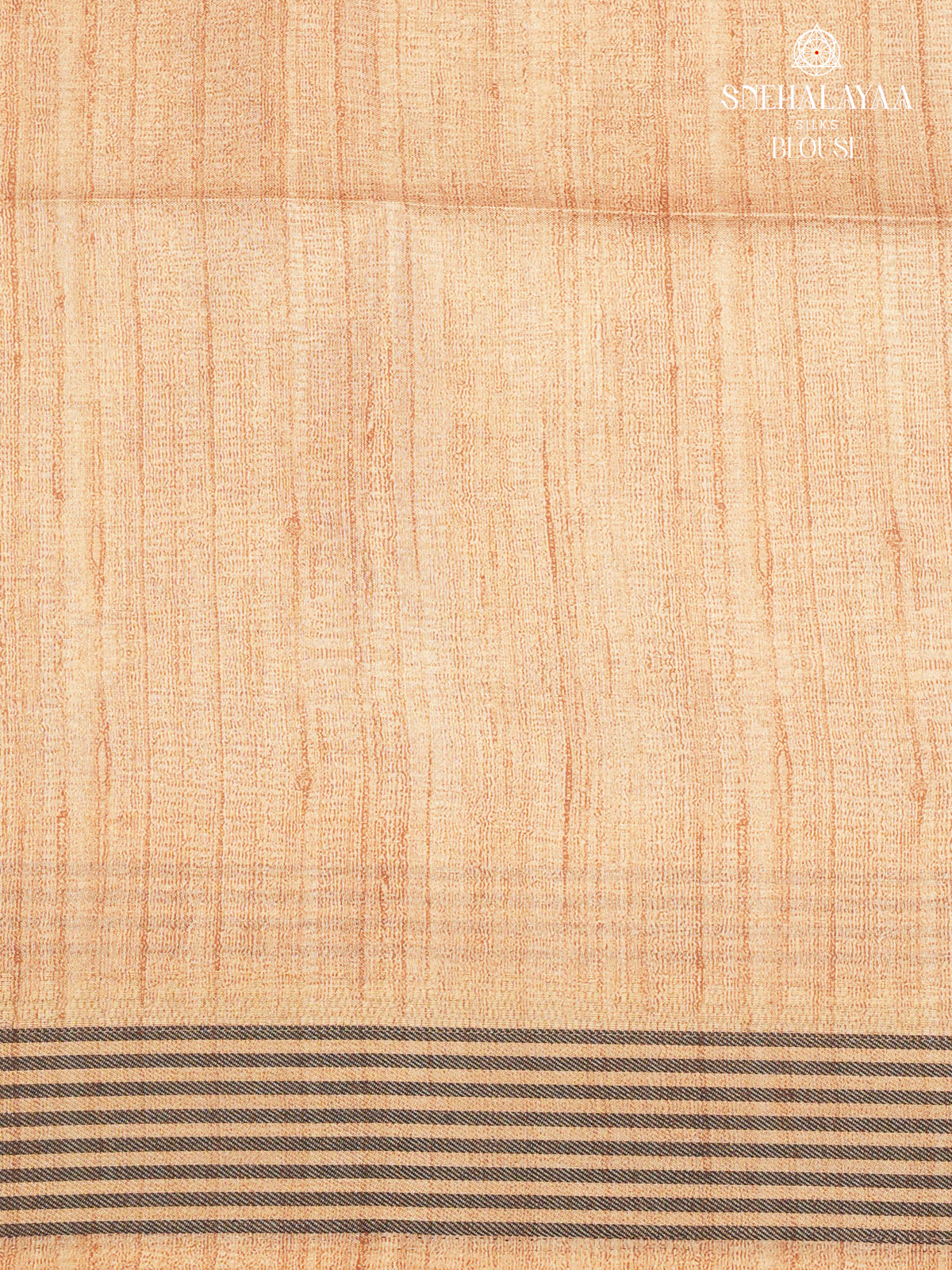 A Kalamkari tussar saree features hand drawn traditional motifs on rich, textured tussar silk. Its earthy sheen and intricate artwork create a graceful, heritage look.
