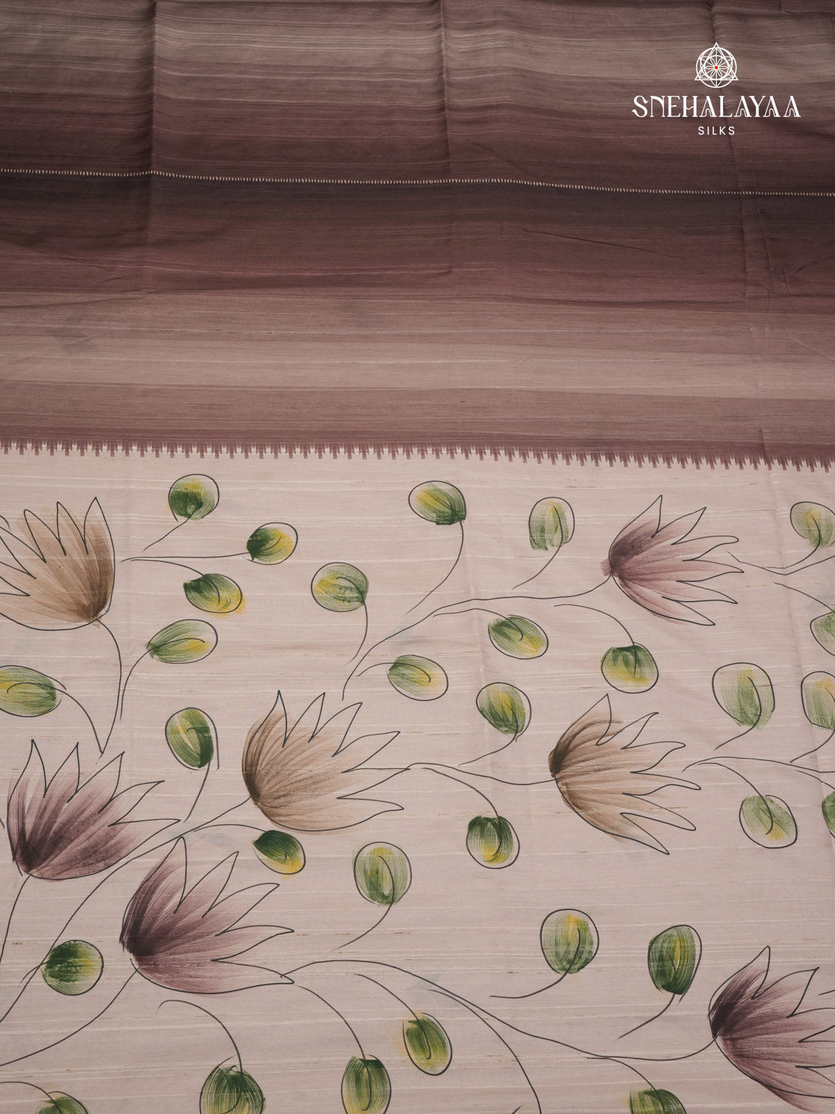 Beautifully printed Tussar with blooming floral patterns that stand out. Its subtle sheen and breathable feel make it a versatile wardrobe favorite.
