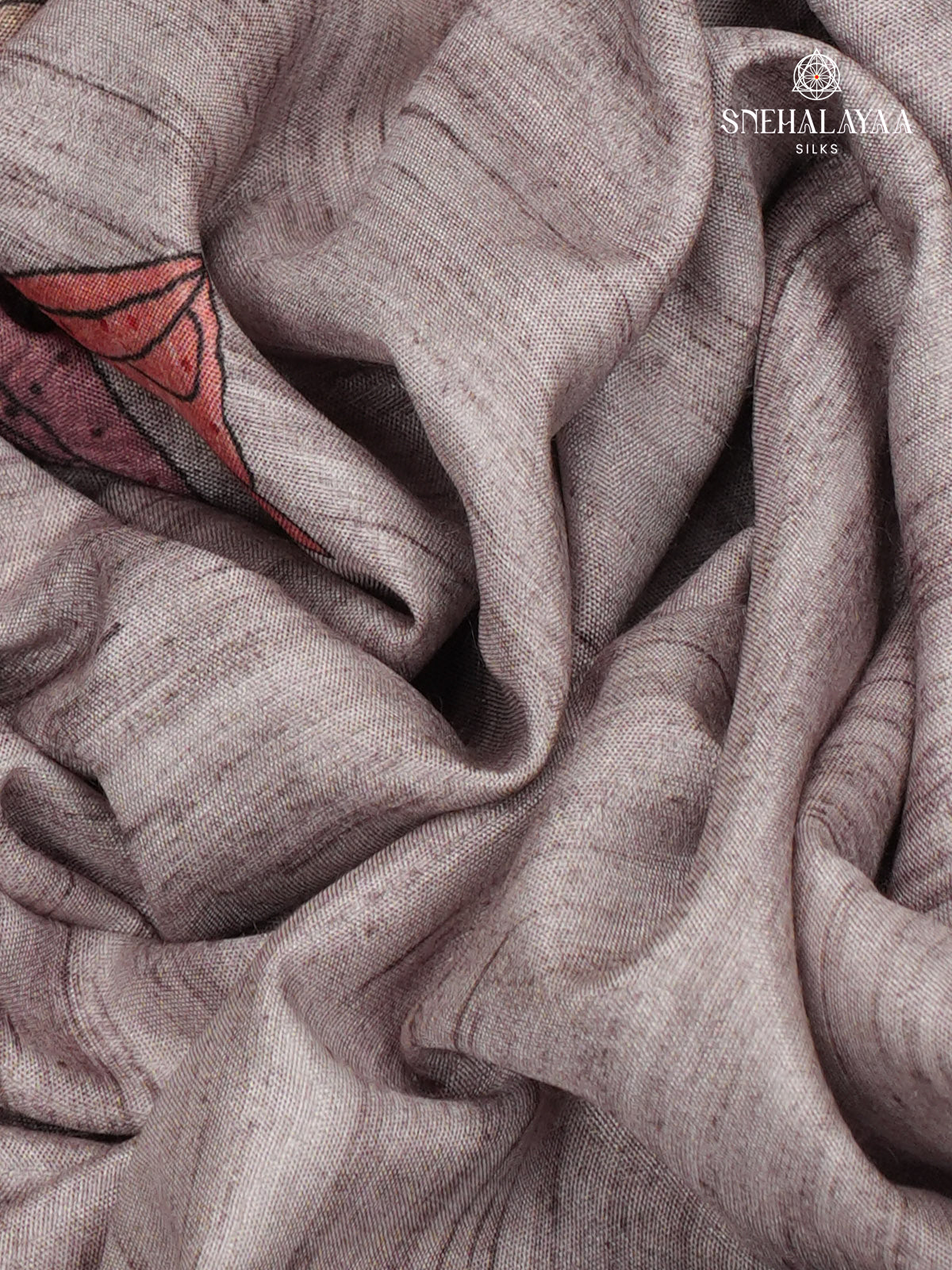 Grey Floral Printed Tussar Saree