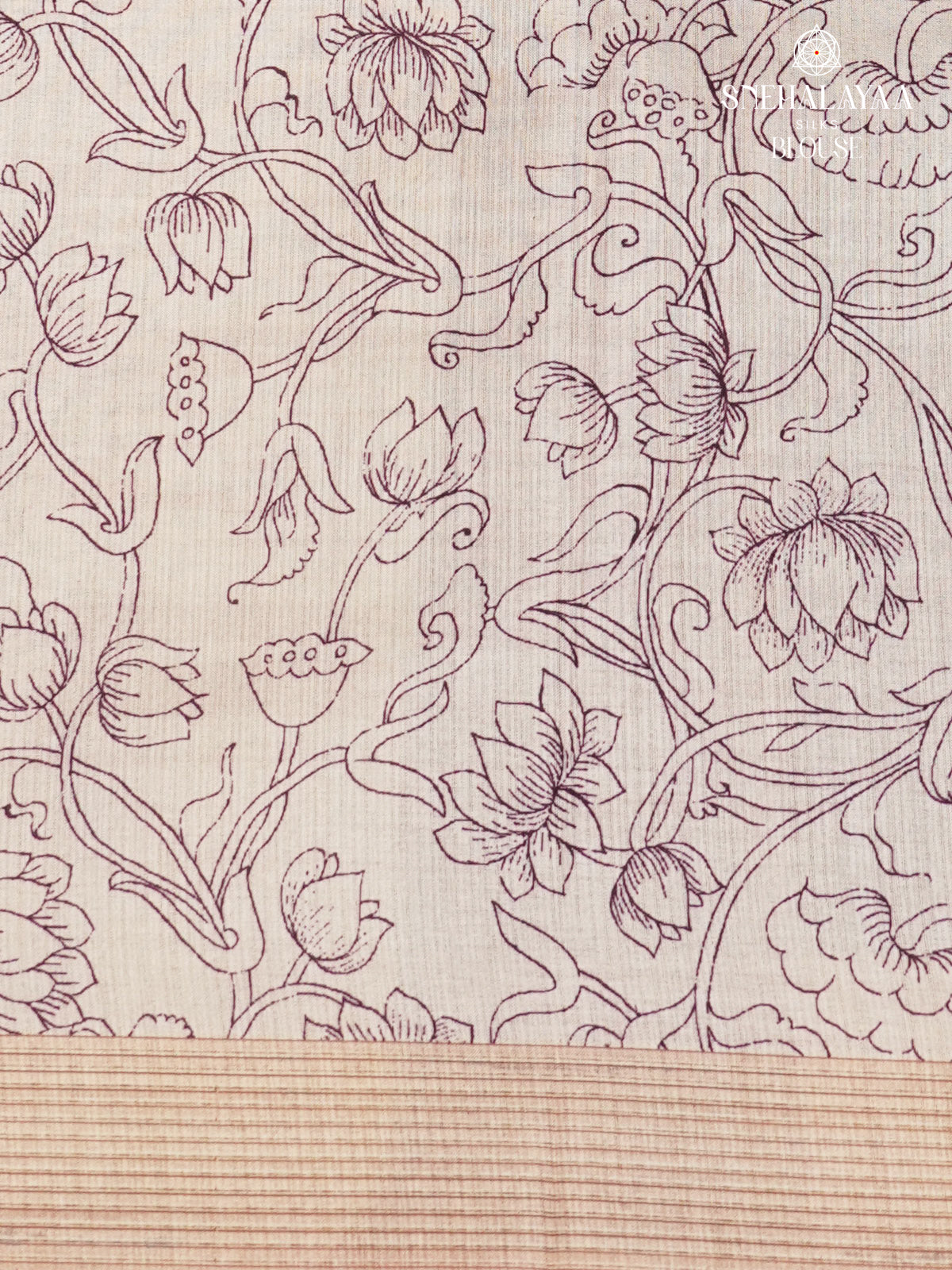 A tussar contemporary-style saree blends the rich, natural texture of tussar silk with modern motifs and minimalist elegance.