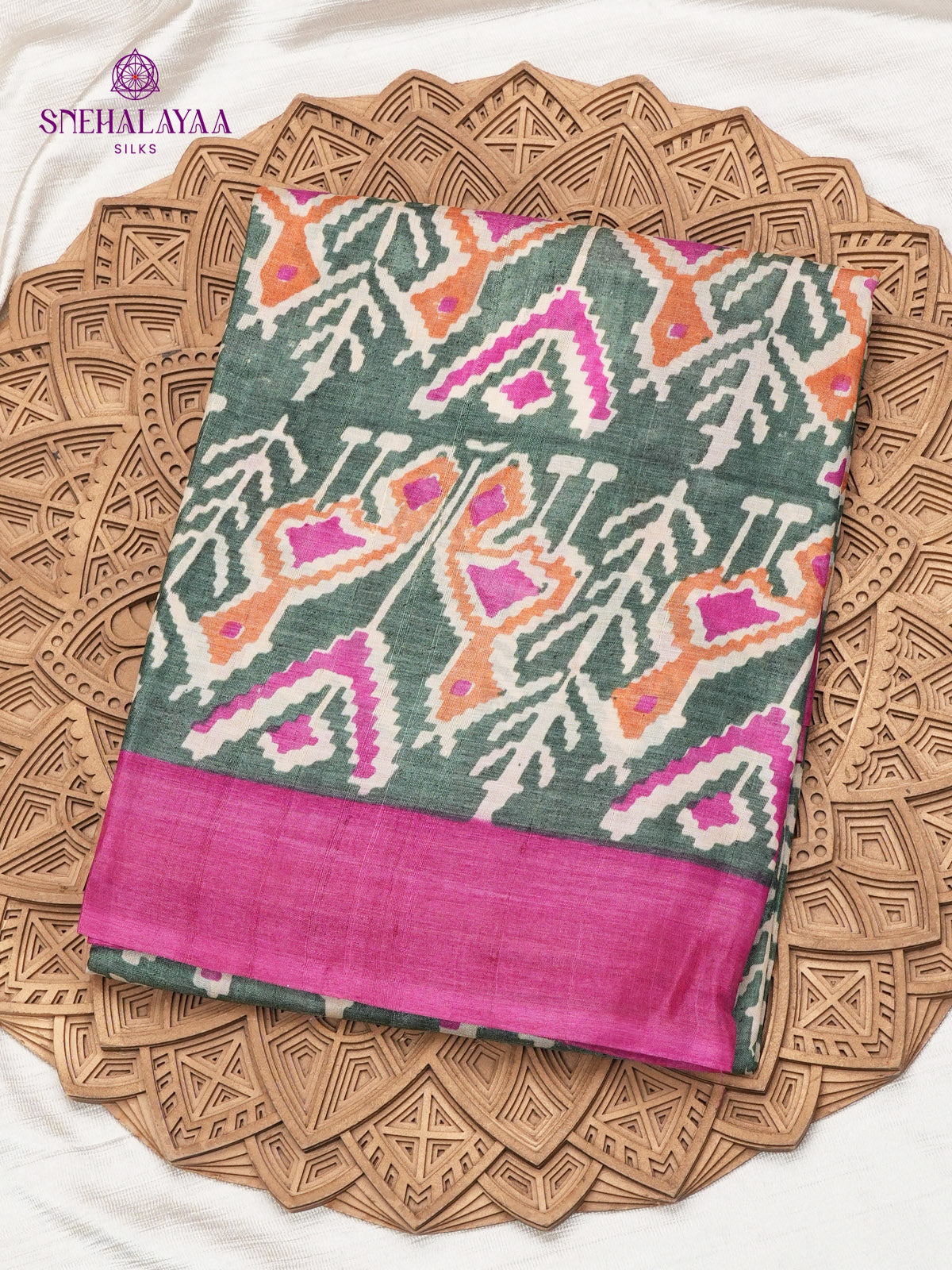 Beautifully printed Tussar with blooming floral patterns that stand out. Its subtle sheen and breathable feel make it a versatile wardrobe favorite.