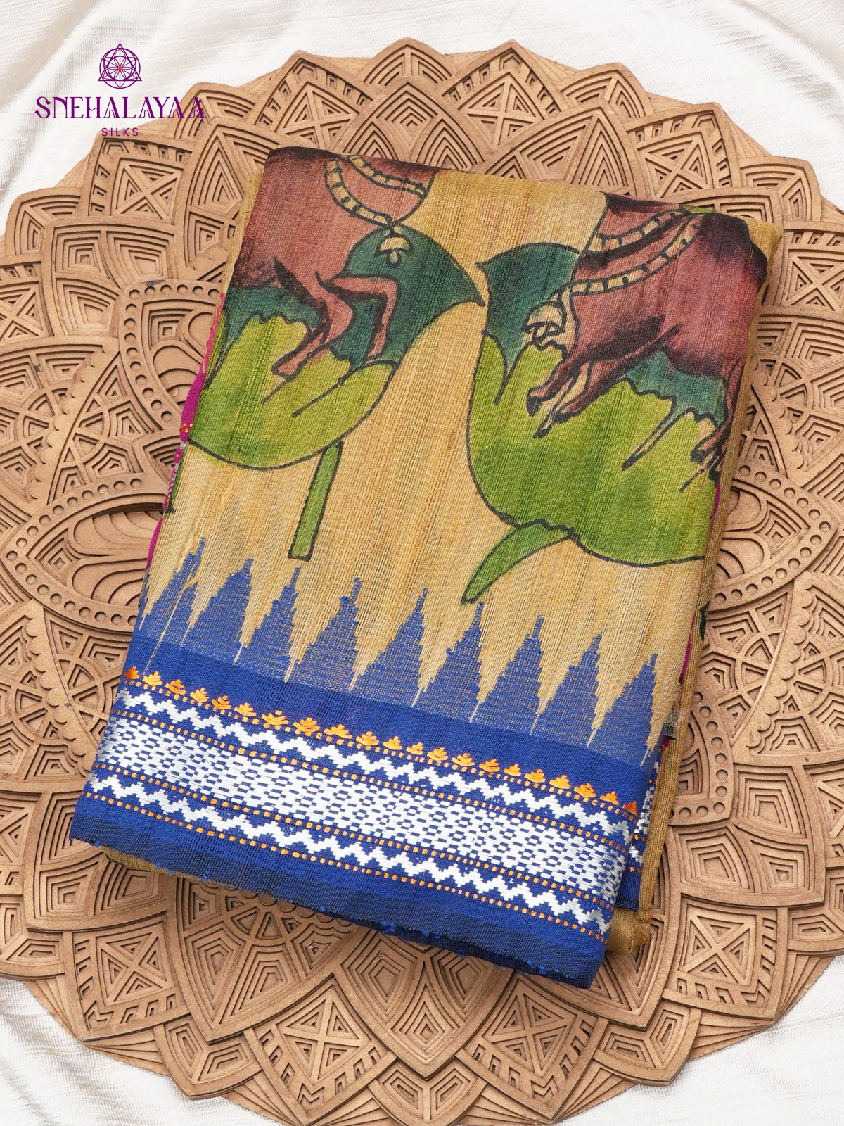 Beautifully printed Tussar with blooming floral patterns that stand out. Its subtle sheen and breathable feel make it a versatile wardrobe favorite.