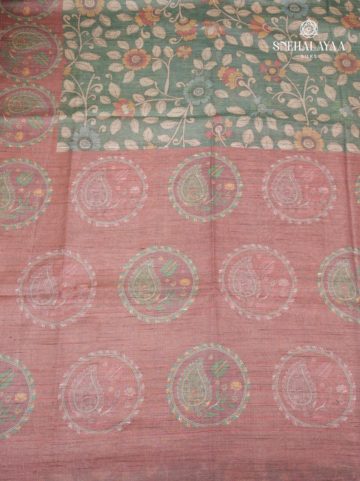 Beautifully printed Tussar with blooming floral patterns that stand out. Its subtle sheen and breathable feel make it a versatile wardrobe favorite.